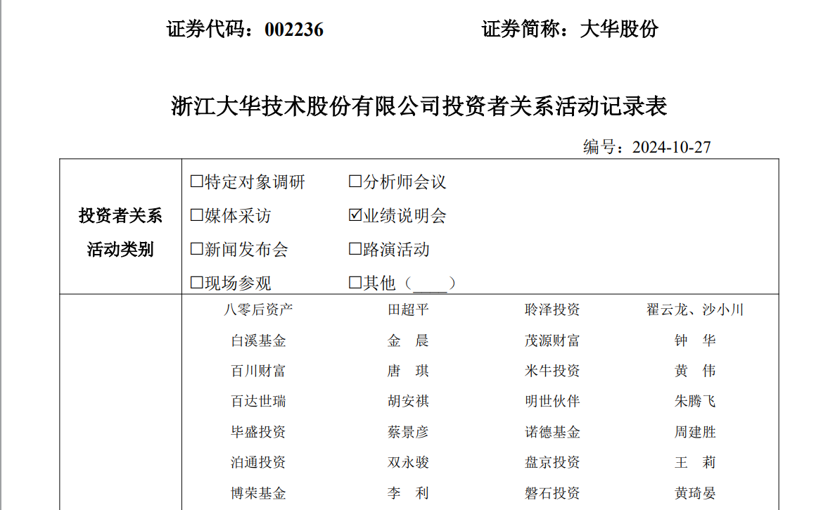 机构调研记录还显示,尽管处于低迷的时期,大华股份依然信心稳定,在碎片化市场中,公司能力有比较强的护城河。公司看好未来数字化转型的大机会,依然保持着坚定的投入。总体来看,从2024年第四季度开始,公司毛利率将趋于稳定,明年稳中有升。预计四季度国内业务能转正,海外继续保持增长。